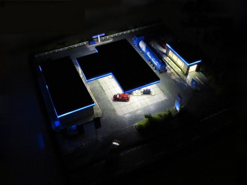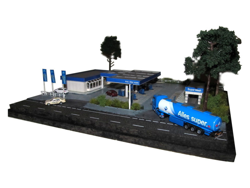 - Zusätzliches Zubehör: Fahnenmasten, ARAL-Schild, Staubsaugerinsel